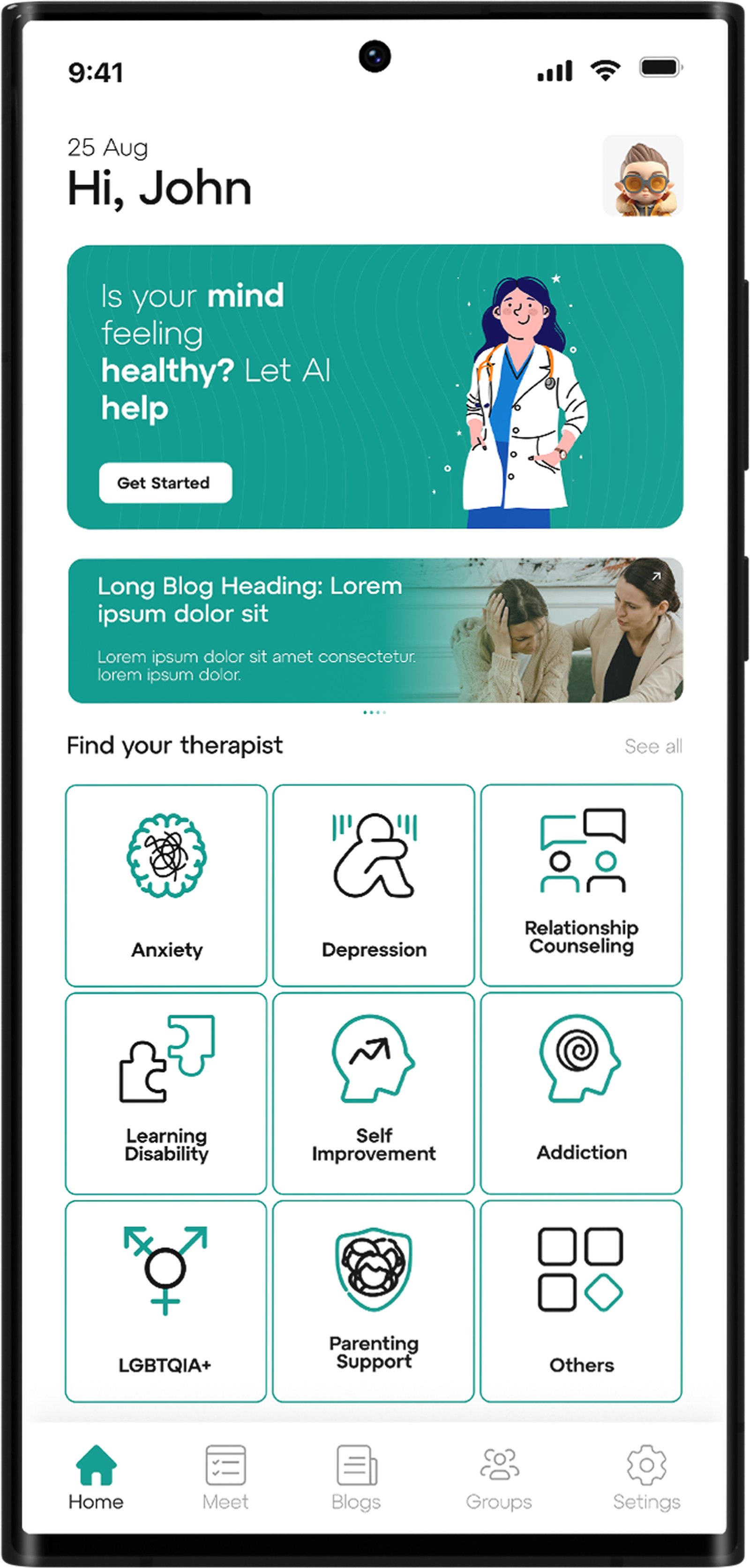 Stay anonymous while booking therapy or joining groups. Your privacy is our priority.